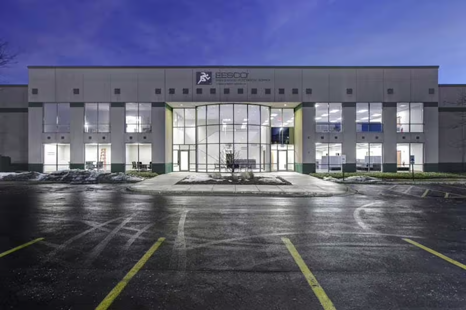 The two-story facility required build-out of offices on both floors, a two-story reception area, warehouse space and a two-stop hydraulic elevator. Inside, the deck structure used bar joist, composite metal and concrete, and we installed 10,560 square feet of structural steel mezzanine. Warehouse access was accomplished using a precast concrete drive in ramp, and controlled with a new overhead door. Six new dock levelers were installed, as was 37 new parking spaces. The HVAC installation included seven new rooftop units with economizers and programmable thermostats.